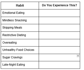 Identifying your bad eating habits is crucial because you can't change what you're not aware of. By shining a light on these behaviours, you empower yourself to make informed decisions and implement lasting changes.